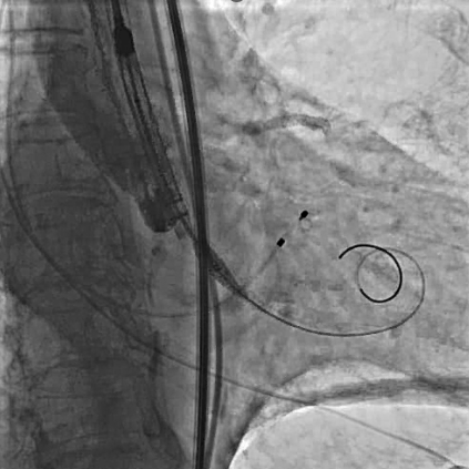 主动脉根部造影:将6F猪尾导管置于升主动脉,使用ACIST CVi血管造影注射系统调整至升主动脉造影模式,行升主动脉造影,观察瓣膜形态、瓣膜反流情况以及冠脉风险。