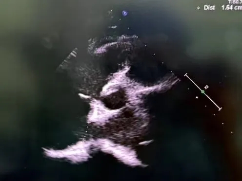 近日,中国医学科学院阜外医院的结构心团队成功为一名19岁女性患者实施纯超声引导介入可降解房间隔缺损(ASD)封堵术。患者因体检发现心脏杂音,进行进一步检查,术中复测确诊为17mm大小的ASD。术中采用介入引导导丝(以下简称“超声导丝”)建立轨道,提高超声下的可视性与安全性。在经胸超声精准引导下,可降解封堵器顺利释放,术后即刻超声显示封堵器位置理想,无残余分流,印证了可降解封堵器在较大房缺中的安全应用。