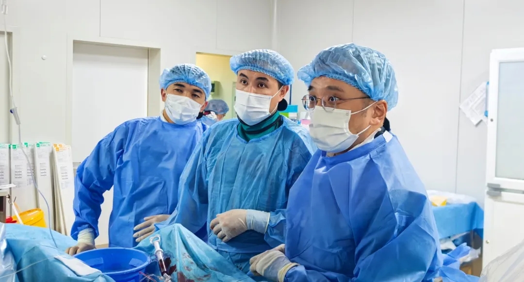 张斌教授(主刀两台)、葛雷教授与陆浩教授(各主刀一台)三位专家依次上阵。面对当地有限的耗材条件,他们灵活调整器械使用与手术策略,凭借深厚经验与精湛技艺,持续奋战至夜晚9时,最终完成全部四例高难度手术。