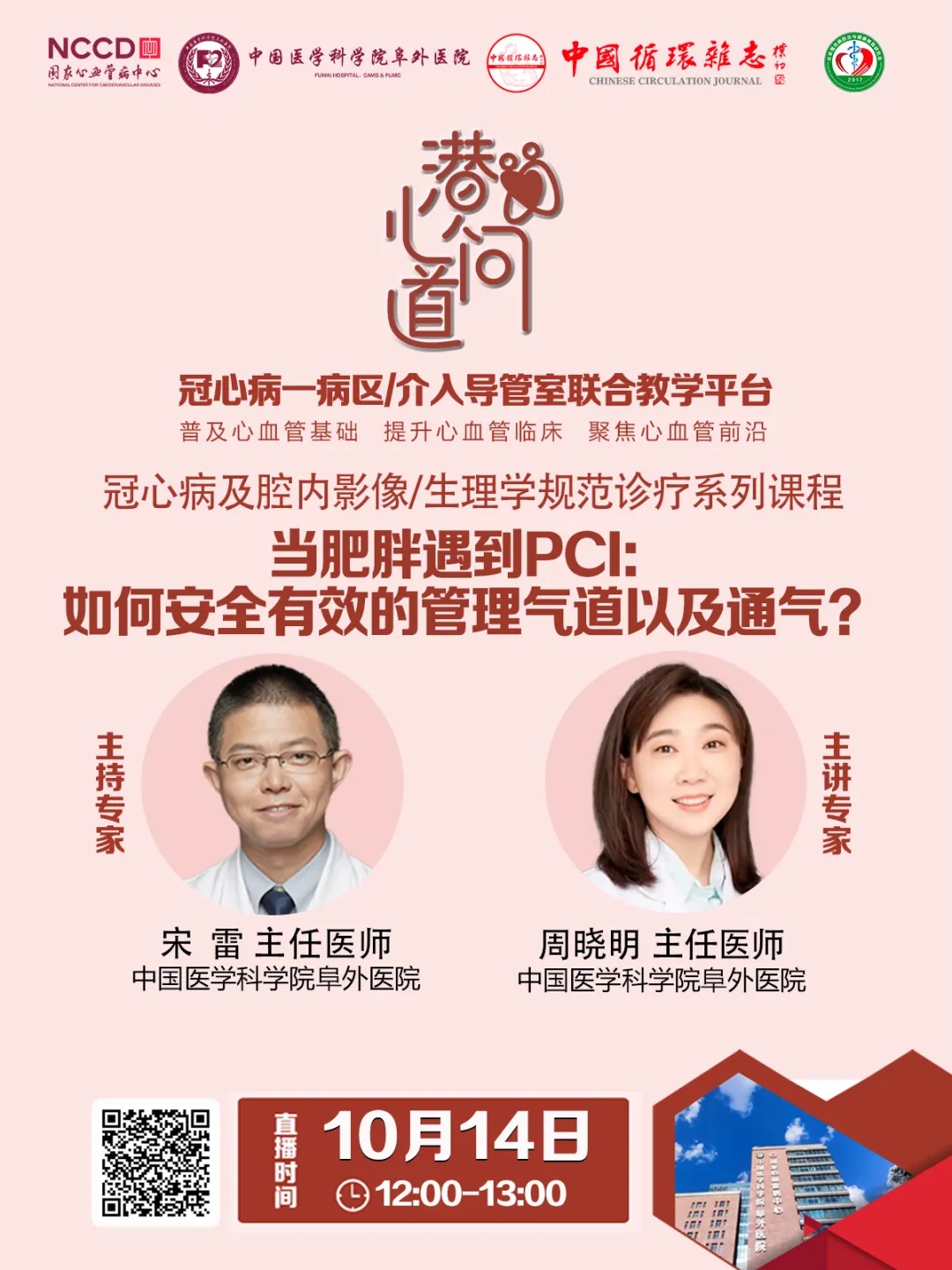 潜心问道丨冠心病及腔内影像/生理学规范诊疗系列课程:当肥胖遇到PCI——如何安全有效的管理气道以及通气?
