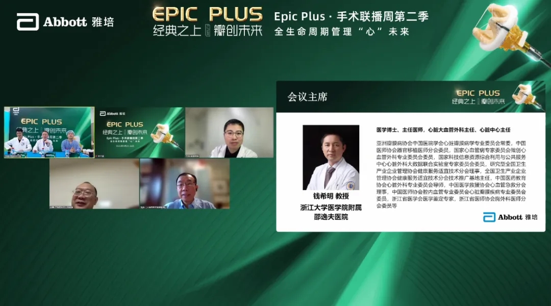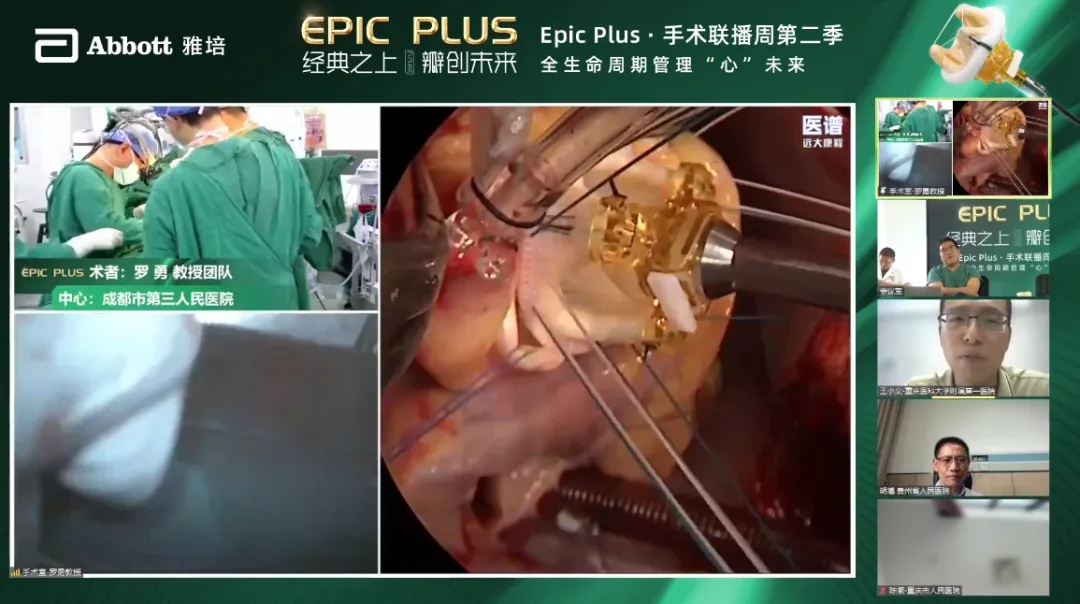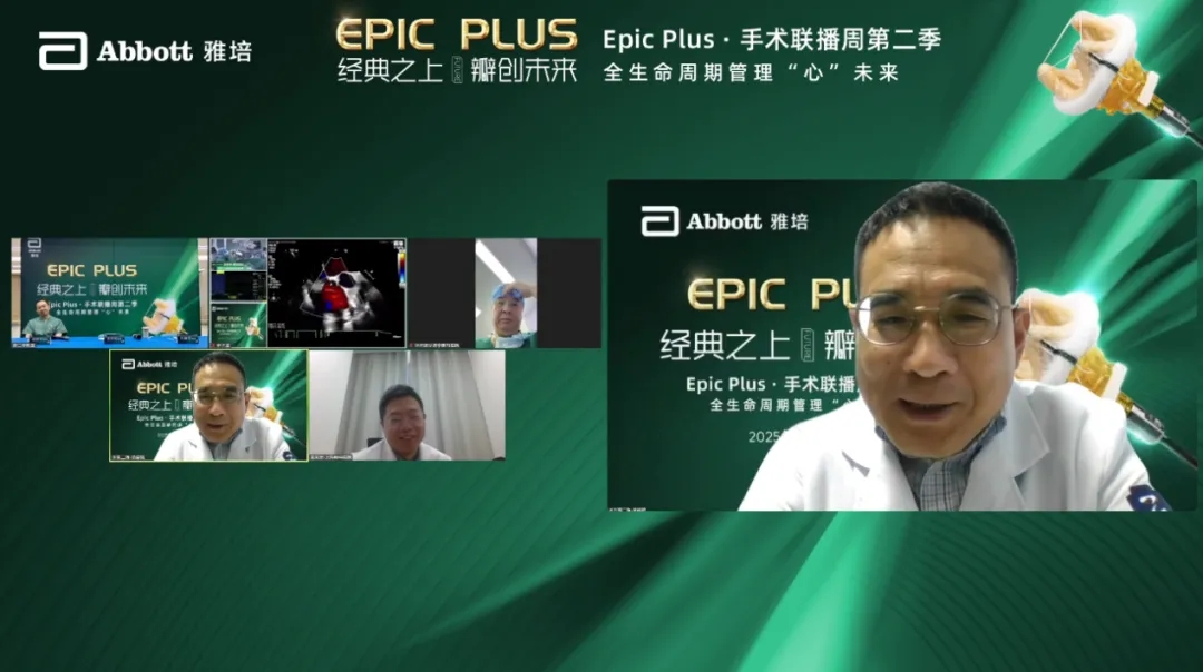 2025年9月23-26日,由雅培公司主办的“Epic Plus手术联播周第二季 - 全生命周期管理‘心’未来”圆满落幕。活动联合高州市人民医院、成都市第三人民医院、浙江大学医学院附属邵逸夫医院、东南大学附属中大医院、浙江大学医学院附属第二医院五大中心,通过实时手术演示结合深度学术研讨的形式,总结了瓣膜治疗的新理念与经验,推动了临床与学术的结合。同时活动也突显Epic Plus 临床应用价值——既解决初次置换需求,更作为患者全生命周期管理的起点,展现“首枚瓣膜”的独特优势。