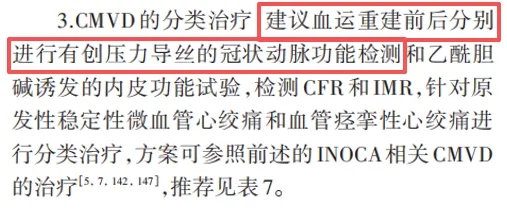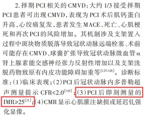 另外有些急性心肌梗死患者,急诊PCI后容易合并慢血流/无复流,也需要有创的检测如IMR等来判断是否合并CMVD。