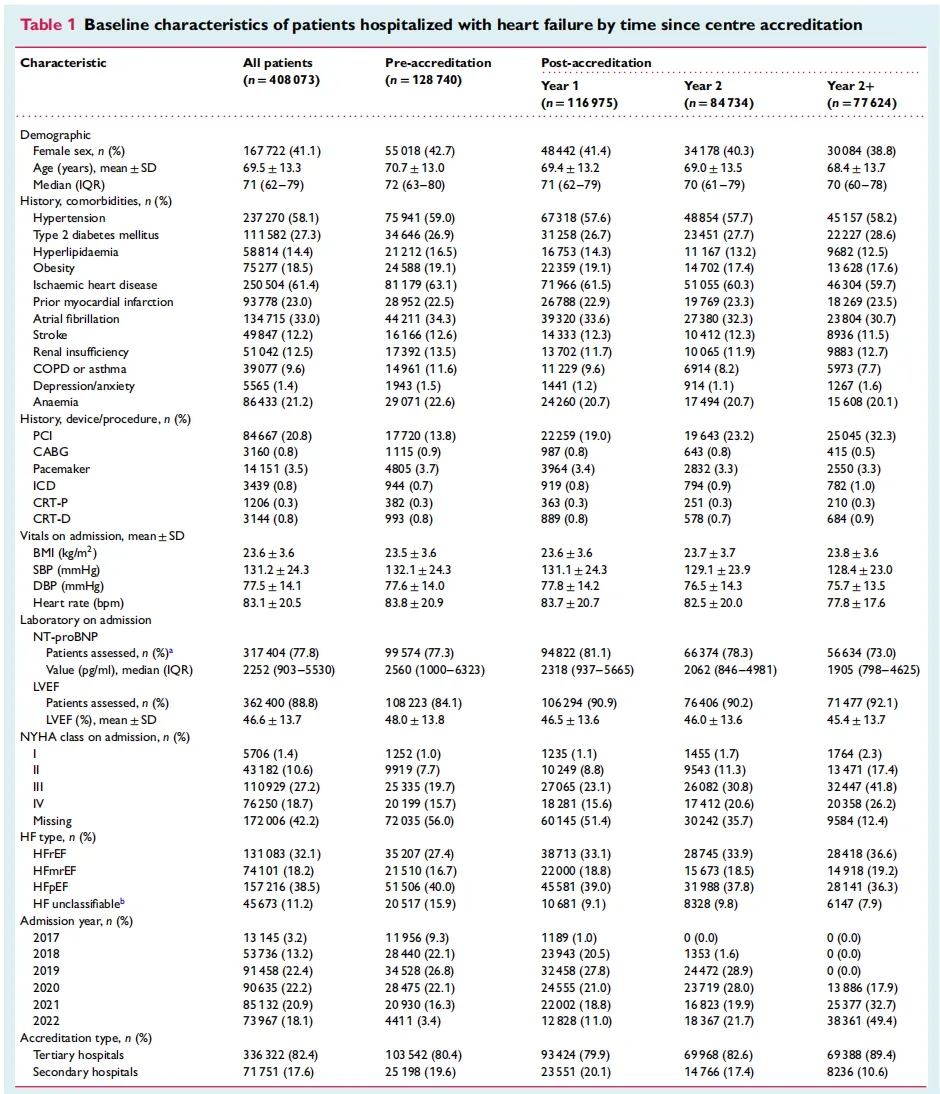 EUR J HEART FAIL | 心衰中心认证有效助力心衰管理、改善患者预后