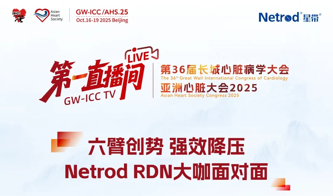 2025年10月17日,第36届长城心脏病学大会暨亚洲心脏大会2025(GW-ICC/AHS.25)召开期间,“六臂创势 强效降压——Netrod® RDN大咖面对面”特邀西安交通大学第一附属医院袁祖贻教授、福建医科大学附属第一医院柴大军教授、海军军医大学第二附属医院梁春教授、四川大学华西医院彭勇教授亮相第一直播间(GW-ICC TV),围绕高血压防控与RDN技术多学科建设、患者管理、循证证据、临床实践等热点话题展开深入对话,将理论基础与临床体会融汇贯通,为线上线下的参会者带来了一场富有深度与启发的学术分享。