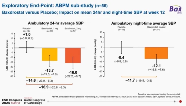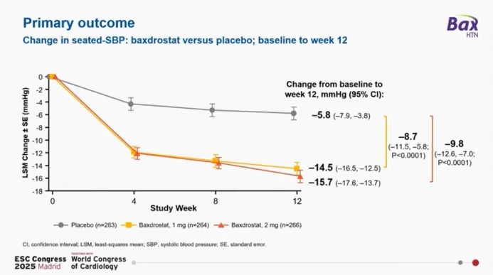ESC 2025丨Baxdrostat治疗未控制及难治性高血压,疗效显著且安全性良好
