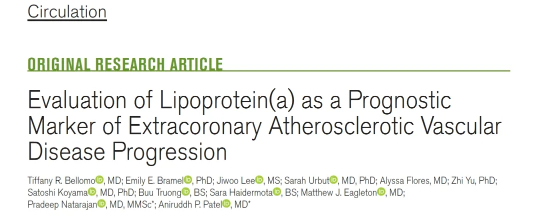 3. Tiffany R. Bellomo, et al. Evaluation of Lipoprotein(a) as a Prognostic Marker of Extracoronary Atherosclerotic Vascular Disease Progression. Circulation. 2025;152:00–00. DOI: 10.1161/CIRCULATIONAHA.124.073579