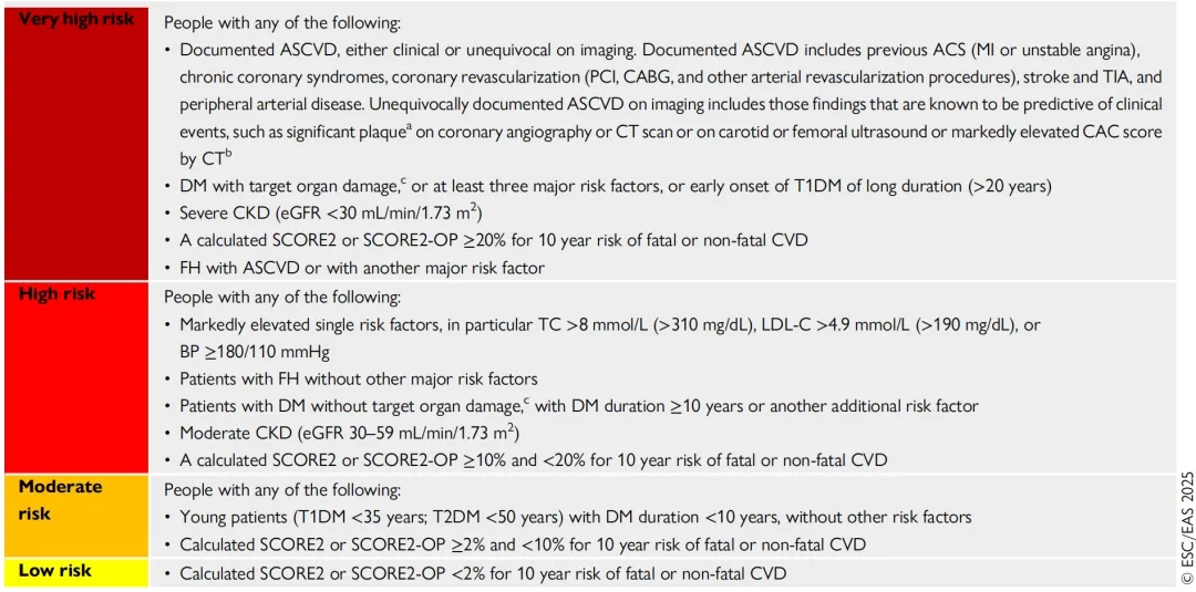 基于新的风险模型,指南更新了CVD风险分层标准。