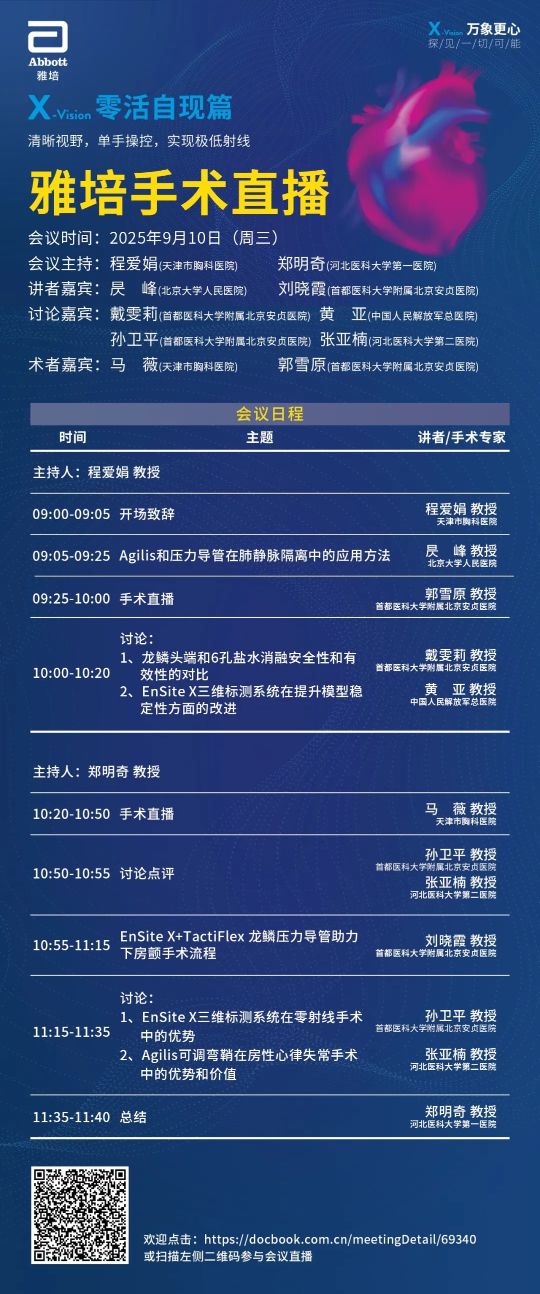 X-Vision零活自现篇手术直播将于2025年9月10日09:00再次启航!通过手术直播、病例分享和技术讨论,全面展示雅培房颤整体解决方案的临床价值及操作亮点,为与会者带来深度技术解析与实践指导。