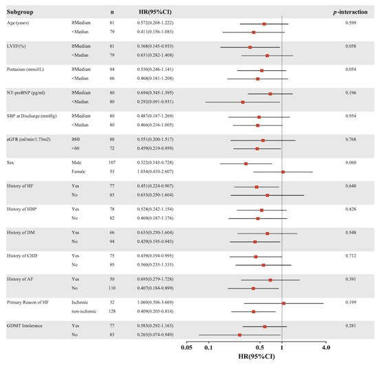 在倾向评分匹配前及匹配后的队列中,早期起始维利西呱治疗均与心衰恶化风险显著降低相关,风险比(HR)分别为0.479(95%CI[0.299-0.768],p=0.003)和0.501(95%CI[0.283-0.888],p=0.020)。维利西呱组达到纽约心脏病协会(NYHA)心功能分级I级的患者比例更高(54.2% vs 22.4%),但两组在终点时的超声心动图参数改善方面无统计学差异。亚组分析显示,对于无法耐受四联GDMT的患者及新发心衰患者,维利西呱治疗仍具有获益。