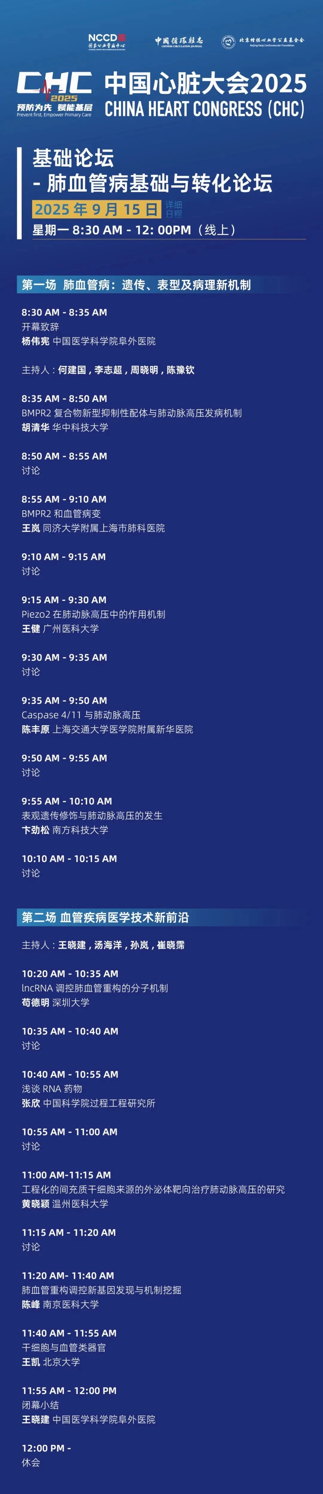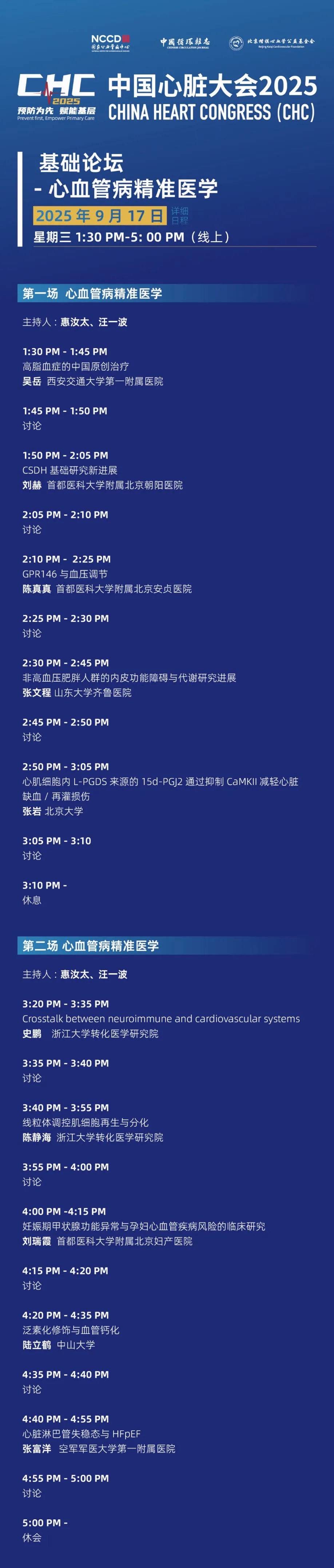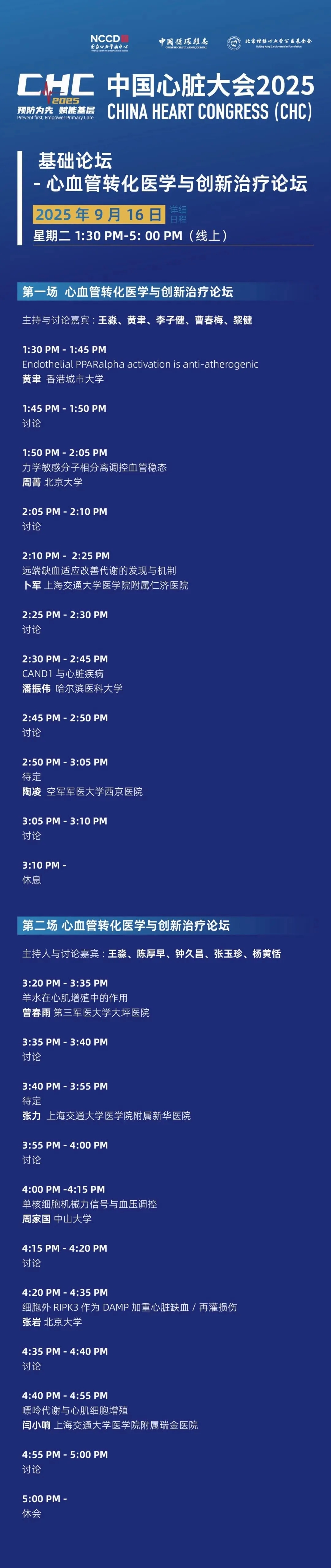 线上日程一览丨中国心脏大会(CHC)2025·基础论坛·线上论坛