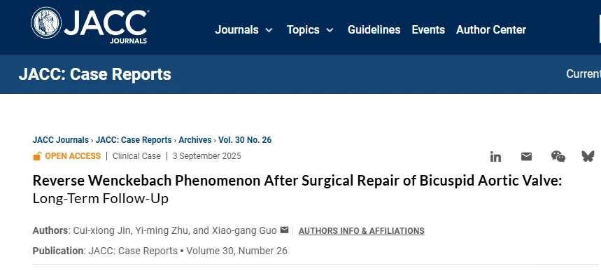 原文参考:1.Jin, C, Zhu, Y, Guo, X. Reverse Wenckebach Phenomenon After Surgical Repair of Bicuspid Aortic Valve: Long-Term Follow-Up.J Am Coll Cardiol Case Rep. 2025 Sep, 30 (26) .