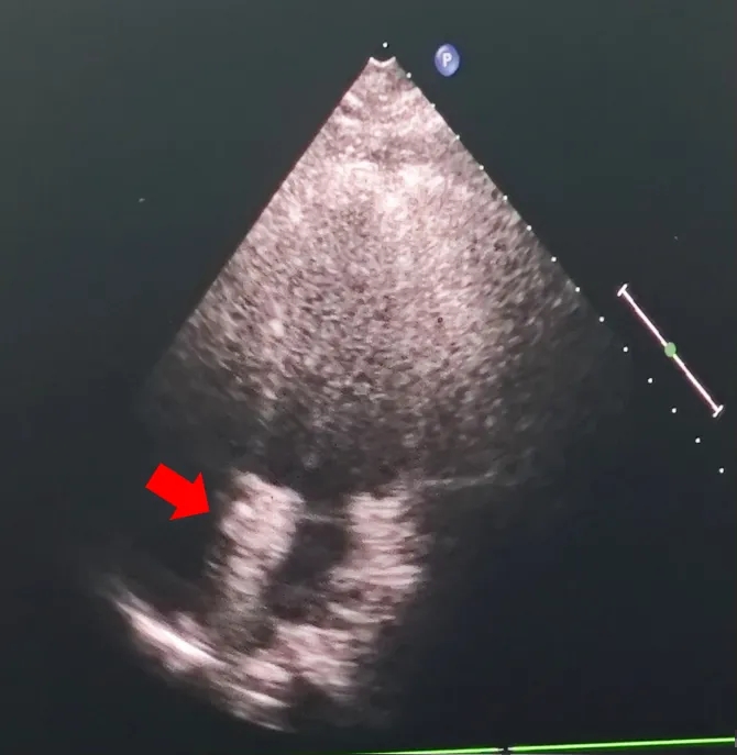 超声提示:心房水平可见右向左分流(大量)。