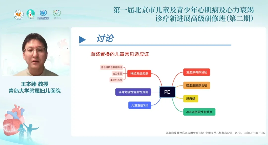 王本臻教授分享了一例难治性心衰患儿的诊治历程。患者为14岁女性,因多次出现进展性心力衰竭反复住院,经多措治疗后免疫学指标、抗心肌抗体、NT-proBNP等指标仍异常,病情未改善。多方筛查后考虑自身免疫性心肌炎并进一步明确诊断,先后予血浆置换治疗4次清除体内炎性介质、改善临床状况后,患儿各项临床症状及实验室指标均显著好转,提示治疗有效。该病例的分享,为临床自身免疫心肌病的诊治拓宽了思路。