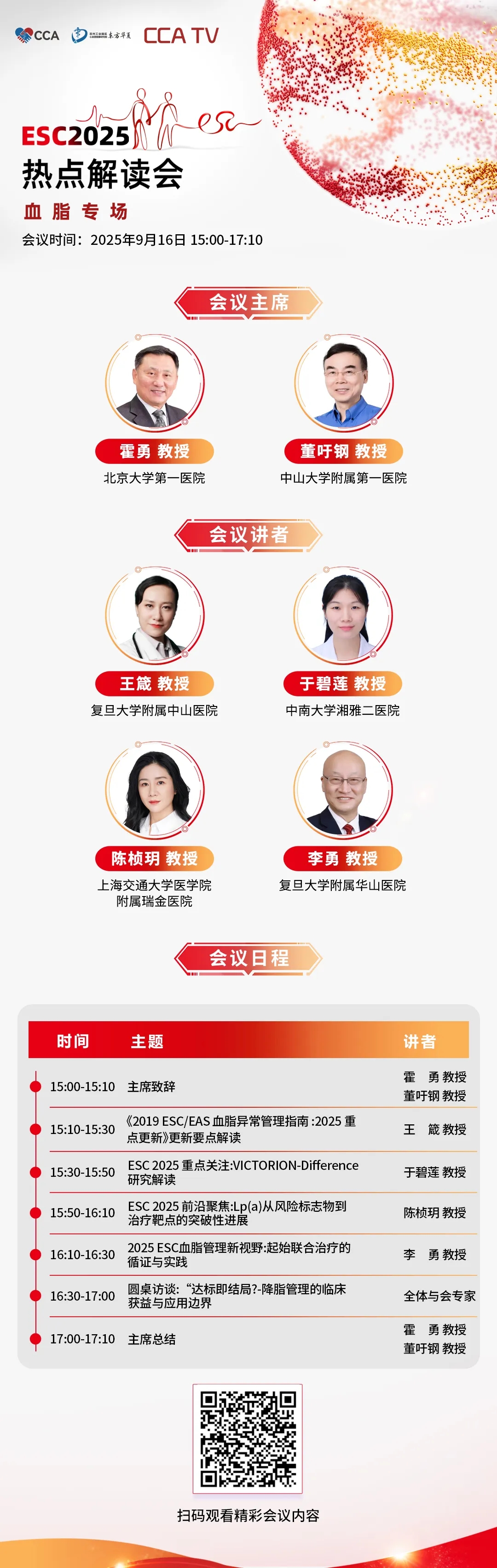本次会议为血脂专场,扫描下方二维码即可预约观看,与全国心血管同仁共飨学术盛宴,9月16日15点,我们不见不散!