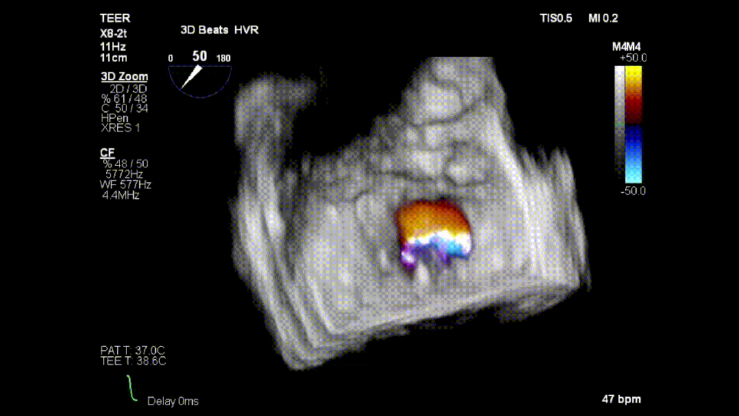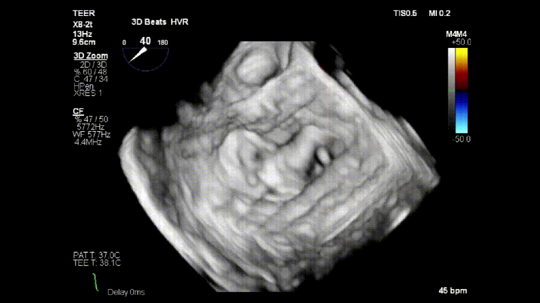 本次培训的“重头戏”—— 两台高难度 TEER 手术沉浸式观摩,将培训氛围推向高潮。手术病例分别为 “P2 宽大脱垂病变” 与 “早期 Barlow 病变”,由厦门大学心血管病医院团队与浙江大学附属邵逸夫医院团队协同完成。术中,专家团队操作精准、配合默契,不仅完美展现了 TEER 技术在复杂病例中的应用优势,更通过实时讲解,让学员直观掌握手术关键步骤、解剖评估要点与应急处理思路。