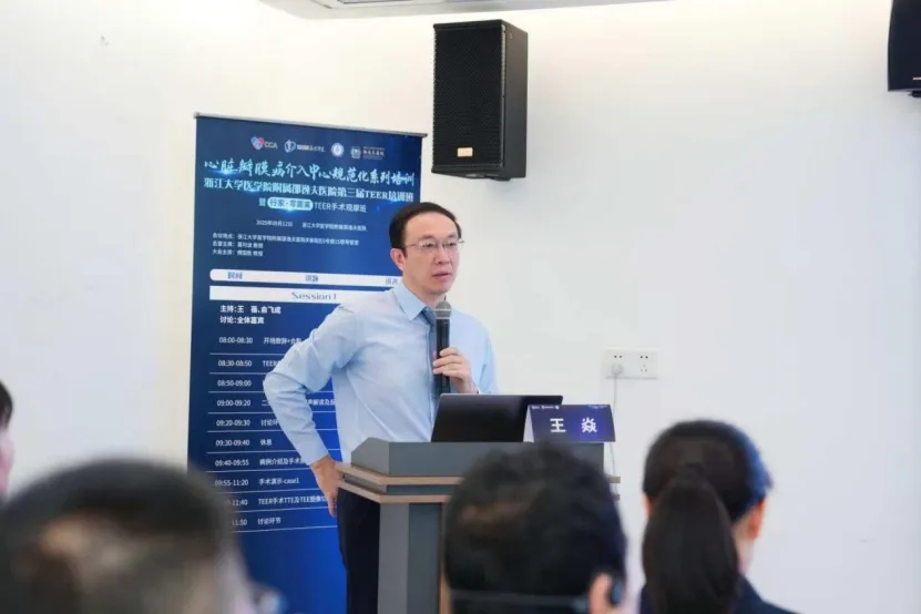 培训班开幕式由浙江大学附属邵逸夫医院王蓓教授主持,医院心内科黄翯教授与特邀专家 —— 厦门大学心血管病医院王焱教授先后致辞。两位教授在致辞中强调,TEER 技术作为心脏瓣膜病介入治疗的关键手段,其规范化应用对提升患者救治效果、推动学科发展具有重要意义,同时对参训学员寄予厚望,希望大家通过本次培训深化理论认知、提升实操能力,为区域内心脏瓣膜病诊疗水平提升贡献力量。