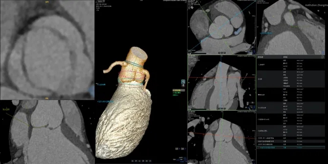 病例 2(51 岁男性):体检时偶然发现 BAV 伴重度反流2周,无明显症状但心超示左室明显扩大已达到主动脉瓣反流手术指征。心脏彩超提示二叶主动脉瓣(BAV),融合型 R-L,重度反流,主动脉窦直径37mm、基底环直径30mm。中年患者对手术创伤、恢复速度要求高,希望在治疗疾病的同时,尽量减少对工作与家庭的影响。