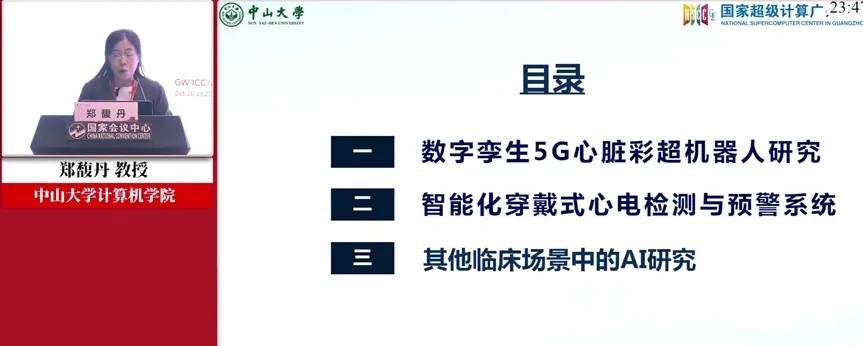 中山大学的郑馥丹教授团队聚焦 AI 技术在心血管领域的实践应用,分享了两大核心研究成果。其一为数字孪生 5G 心脏彩超机器人,该设备采用主从式架构,可实现远程精准采集心脏超声数据,有效解决基层超声医生缺口大、操作主观性强的问题。机器人通过关键点识别、深度感知等算法,能自主定位心脏位置,配合医生远程操控完成标准化采集,目前已在新疆等地医院开展临床试用。
