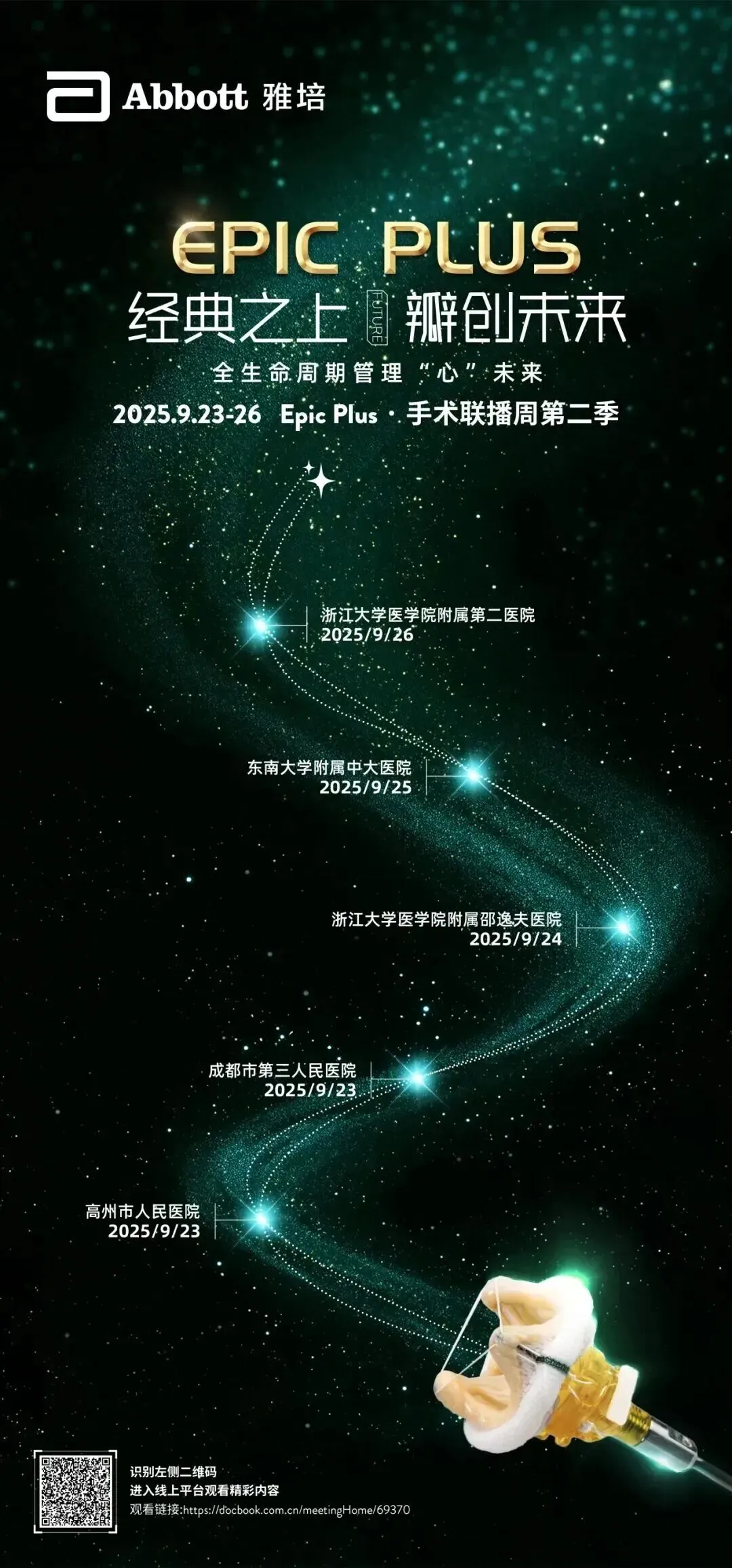 在继第一季Epic Plus手术联播周后,“经典之上,瓣创未来——Epic Plus手术联播周”第二季将于9月23-26日再度袭来。本次活动汇聚众多行业权威专家齐聚线上线下,通过实时手术直播,将当下热点术式与新一代瓣膜产品技术相结合,深入探讨和交流心脏瓣膜疾病治疗的最前沿进展与创新理念。