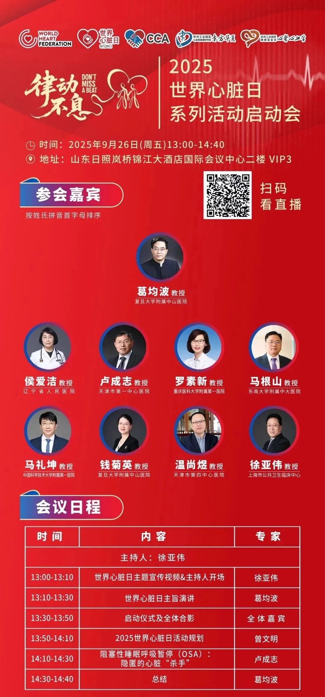 Don't miss a beat 律动不息! | 2025世界心脏日系列活动启动会日程公布 2025-09-20 18:50:00 浏览量:12 -END- 专业的心血管医生学术交流平台 医谱APP 点击下载 医谱学术 点击关注 版权及免责声明: 本网站所发表内容知识产权归属医谱平台、主办方以及原作者等相关权利人,未经许可,禁止进行复制、传播、展示、镜像、转载、摘编等。经授权使用,须注明来源,否则将追究其法律责任。有关作品内容、版权和其他问题请与本网联系