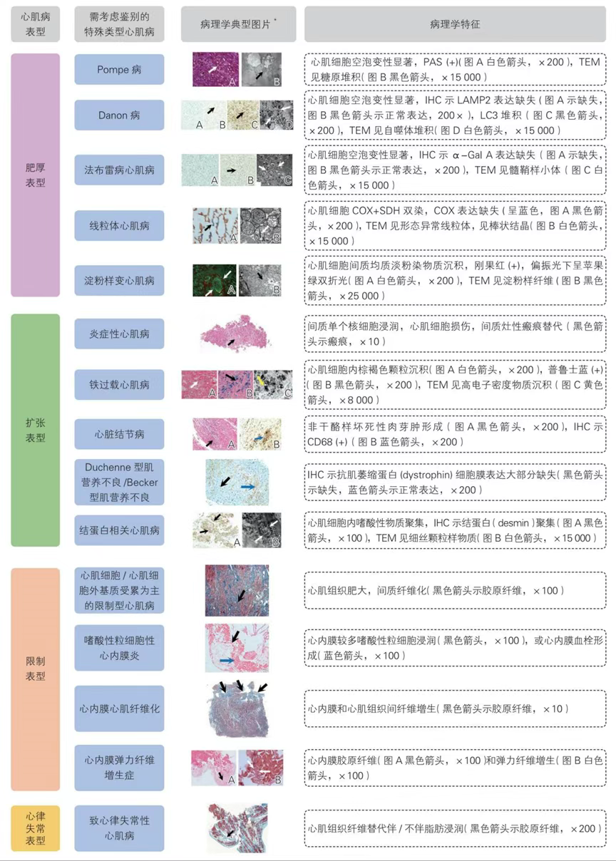 图1 不同表型心肌病的组织学特征