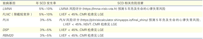 注:HCM:肥厚型心肌病;DCM:扩张型心肌病;ACM:致心律失常性心肌病;SCD:心脏性猝死。*:SCD高危基因型:DCM:如携带LMNA、FLNC致病变异;ACM:如携带DSP、TMEM43致病变异或携带多种致病变异。
