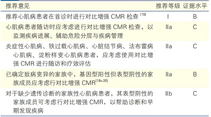 表3 心肌病患者的CMR检查建议