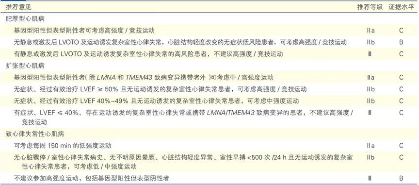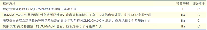 表13 心肌病患者的运动相关随访建议