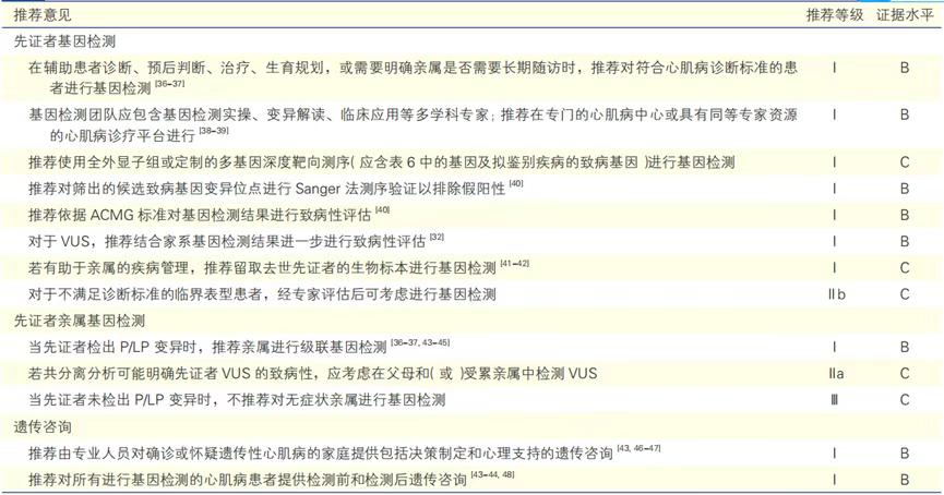 表6 心肌病患者基因检测和遗传咨询建议