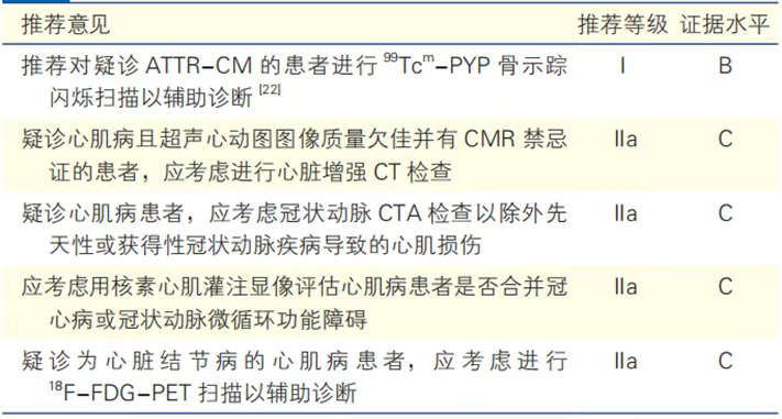 表5 心肌病患者的CT检查与放射性核素检查建议