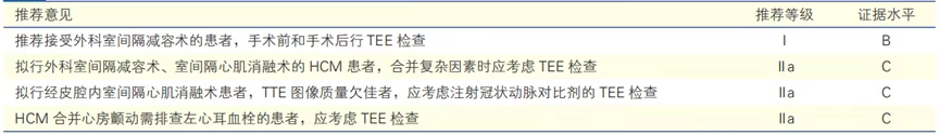 表8 HCM的TEE检查建议