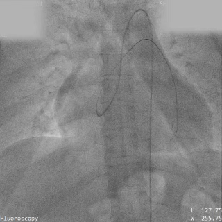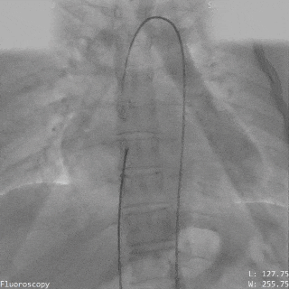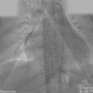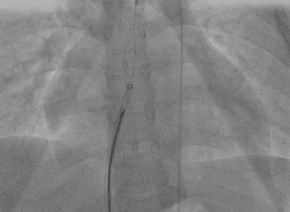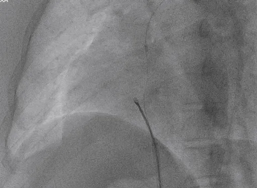 现病史:患者既往轻度活动后感胸闷气短,于外院体检时超声心动图提示:先天性心脏病,主动脉窦破裂。于外院行升主动脉造影,可见右冠窦下方有瘤样凸出,局部嵌入右心房,破口直径约为8mm,经股静脉送入单弯导管入肺动脉测肺动脉压力,约为22/7(15)mmHg。患者有慢性肾病病史,长期服激素治疗。患者抵抗力低,如植入镍钛合金封堵器,需要终生预防感染性心内膜炎。因此,外院建议选择外科手术修补。