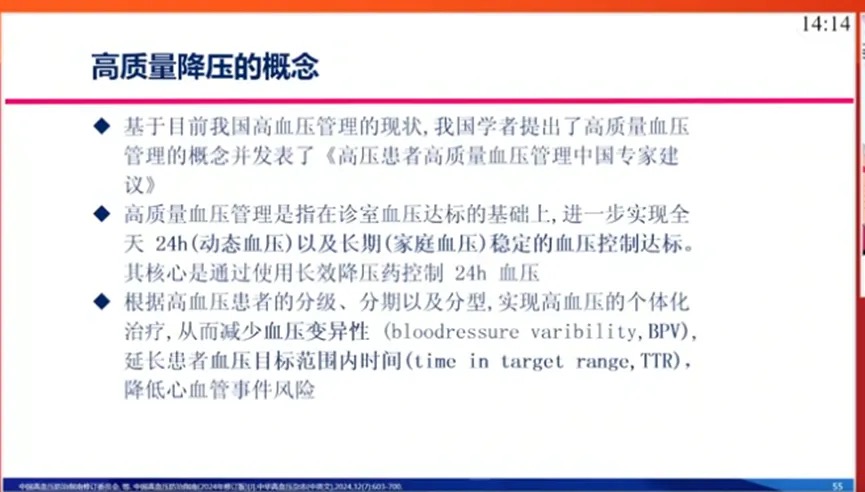 高质量降压的核心理念是指通过精准测量(如动态血压与家庭自测)确保24小时血压长期平稳达标,并延长血压目标范围内时间,以最终降低心血管风险(图4)。