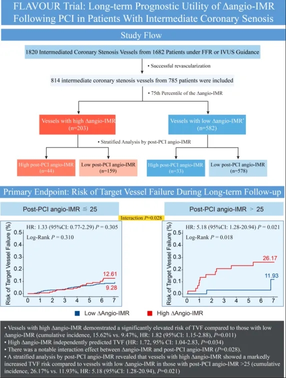 该研究是一项FLAVOUR研究的事后分析,纳入了原研究中接受PCI治疗的814根中度狭窄冠状动脉。主要终点是长期随访期间靶血管失败(TVF),定义为心源性死亡、靶血管心肌梗死或靶血管血运重建的复合终点。