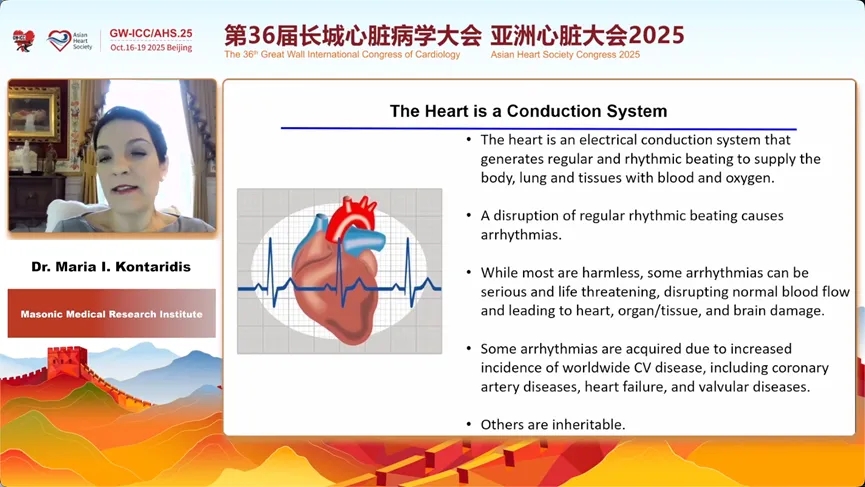 Maria I. Kontaridis教授深入探讨了一种名为TRPM4的离子通道在遗传性心律失常中的关键作用。TRPM4是一种钙离子激活的非选择性阳离子通道,其功能异常与长/短QT综合征、Brugada综合征等多种致命性心律失常有关。