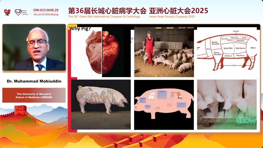 Muhammad Mohiuddin教授详细介绍了其团队使用通过敲除猪的3个超急性排斥相关基因、1个生长激素受体基因,并转入6个人类基因(用于抑制补体、凝血和炎症),最大限度地降低了免疫排斥。尽管两位接受移植的患者最终分别生存了60天和40天,未能实现长期存活,但这一大胆尝试本身已是医学史上的巨大飞跃。Mohiuddin教授坦诚地分析了失败的原因,包括患者术前状态极差、新型免疫抑制方案的挑战、以及意外发现的猪巨细胞病毒潜伏感染等。这些宝贵的“失败”经验,为未来异种移植走向临床常规化扫清了障碍,指明了方向。