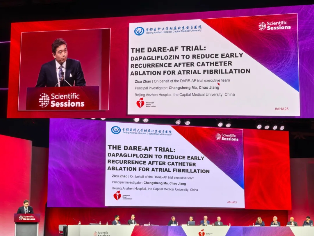 2025年11月7日至10日,美国心脏协会年会(AHA 2025)在美国新奥尔良盛大召开。由北京安贞医院马长生、蒋超教授作为主要研究者开展的DARE-AF研究(Dapagliflozin on Recurrence After Catheter Ablation for Atrial Fibrillation)成功入选本次大会的Late-breaking Science环节。