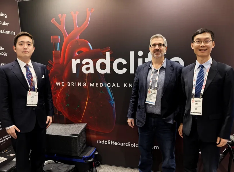 在AHA 2025会议现场,该研究受到国内外心血管同行的广泛关注。主要研究者蒋超教授、研究主要执行者赵紫旭博士接受了包括Radcliffe Cardiology在内的多家专业心血管专业媒体采访。