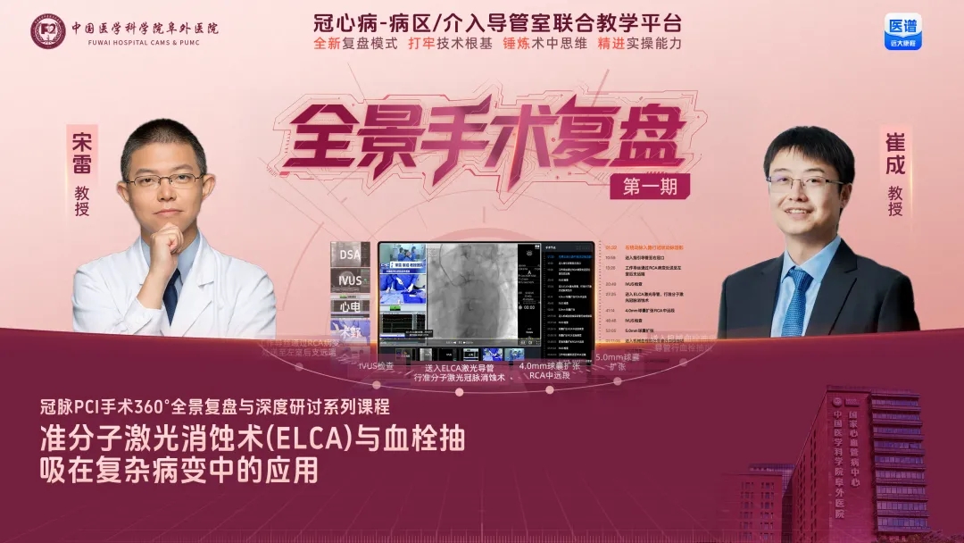 9月18日,全景手术复盘系列课程首期教学内容在阜外医院宋雷教授主持下,崔成教授通过一例“高血栓负荷编织样血管介入治疗”的特殊病例复盘,深入解析了激光开通血管的策略选择与操作要点,并展示了血栓抽吸术在快速恢复冠脉血流、减少远端栓塞中的关键技巧,为临床复杂冠脉病变应对处理探索了新策略。
