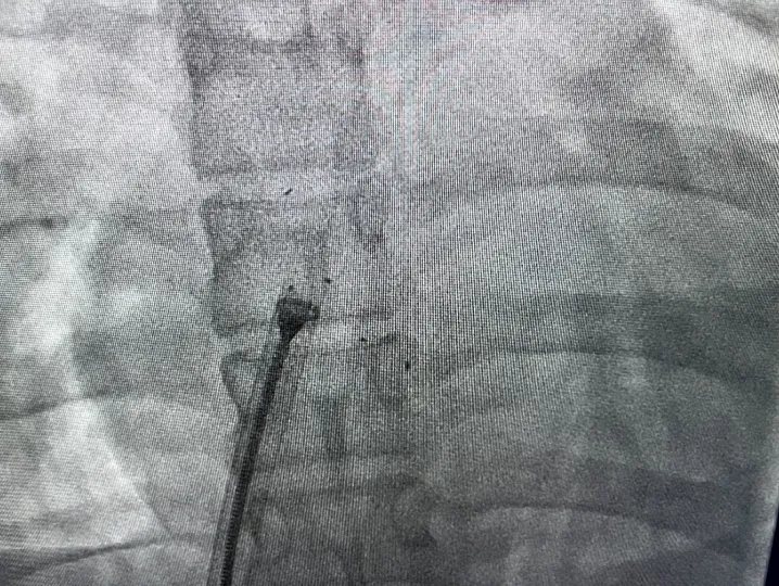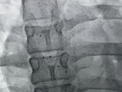 DSA下前推钢缆,后撤鞘管,使左盘面3个Mark点及腰部Mark点推送至鞘管外