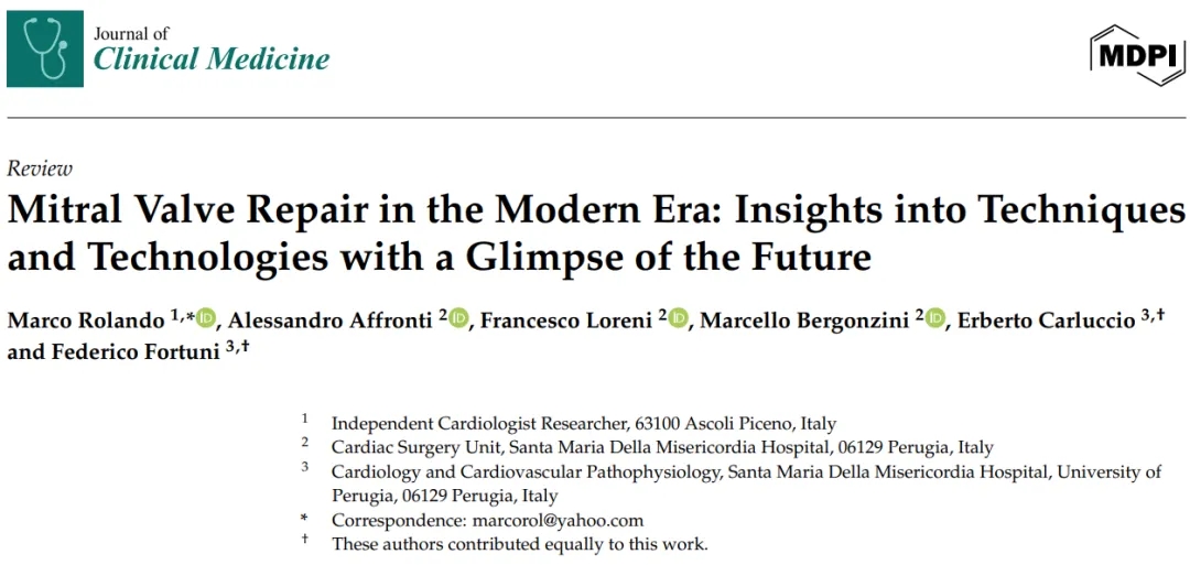 Rolando M, Affronti A, Loreni F, Bergonzini M, Carluccio E, Fortuni F. Mitral Valve Repair in the Modern Era: Insights into Techniques and Technologies with a Glimpse of the Future. J Clin Med. 2025 Oct 14;14(20):7251. doi: 10.3390/jcm14207251.