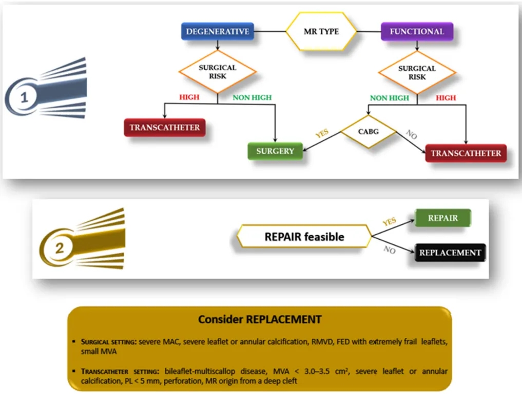 多学科心脏团队将这些参数与解剖和手术考虑因素整合到治疗算法中,确保决策不仅反映手术可行性,还反映患者更广泛的临床背景和预期寿命。基于临床指南、风险评估和患者价值观的共同决策,是选择最佳策略(无论是外科二尖瓣修复术、经导管二尖瓣修复术、传统或微创方法,还是保守治疗)的基础。