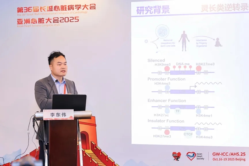 在论坛下半场,海南医科大学的李东伟教授分享了其团队在调控干细胞向心肌细胞分化领域的两个重要发现。其一,他们揭示了先驱转录因子GATA4通过招募组蛋白甲基转移酶SETD1B,在特定阶段反而会抑制心肌分化。其二,他们首次发现一个内源性逆转录病毒元件ERVH48-1对于心肌细胞的定向分化至关重要,其通过与Wnt信号通路抑制剂SFRP2相互作用,维持了Wnt通路的适当活性,从而保障了心肌分化的顺利进行。