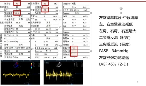 此外,患者存在活动耐力显著下降,入院时NT-proBNP升高(1753pg/mL),经利尿剂治疗后显著改善,且心脏磁共振应变(strain)分析结果异常,故应增加射血分数保留的心力衰竭(HFpEF)的诊断。