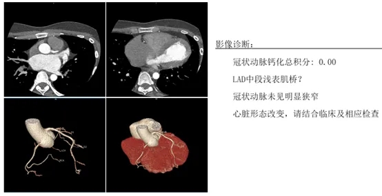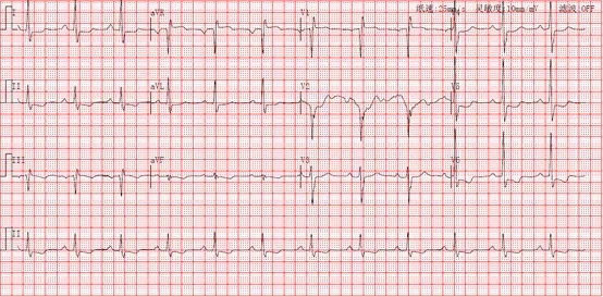 患者入院2周前于户外搬运重物(建筑木材)后出现胸闷,伴气短、出汗;无胸痛、呼吸困难;无咳嗽、咳痰;无心悸、头晕、黑矇;无尿少、腹胀、食欲不振;无夜间阵发呼吸困难;休息数分钟后可自行缓解,上述症状于搬运重物后反复出现,自觉体力下降,日常活动不受影响,夜间可平卧入睡。1天前为进一步诊治就诊于我院门诊,心电图提示ST-T改变,以“胸闷待查”收入院。