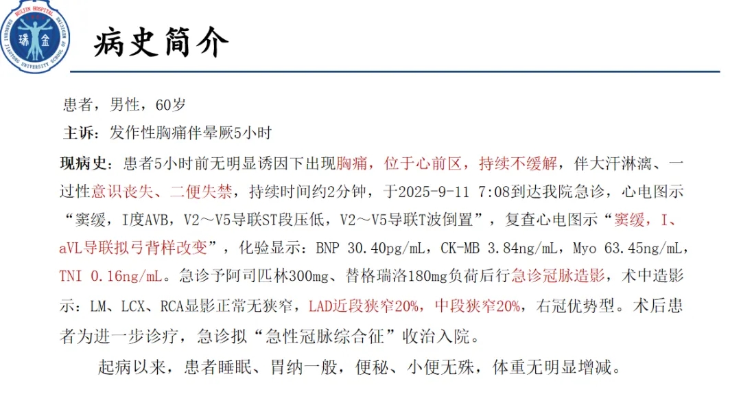 每周三12:00名院大查房|上海瑞金医院:胸痛晕厥“谜案”——冠脉造影大致正常为何险象环生?