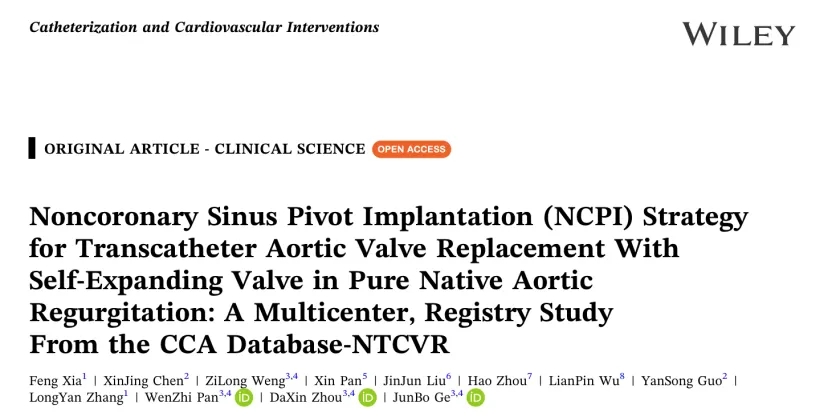 JunBo Ge et al. Noncoronary Sinus Pivot Implantation (NCPI) Strategy for Transcatheter Aortic Valve Replacement With Self-Expanding Valve in Pure Native Aortic Regurgitation: A Multicenter, Registry Study From the CCA Database-NTCVR. 2025 Sep 15. doi: 10.1002/ccd.70183.