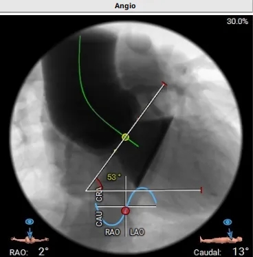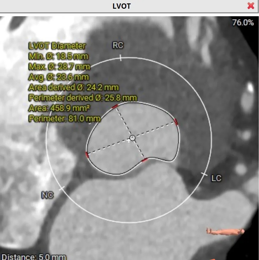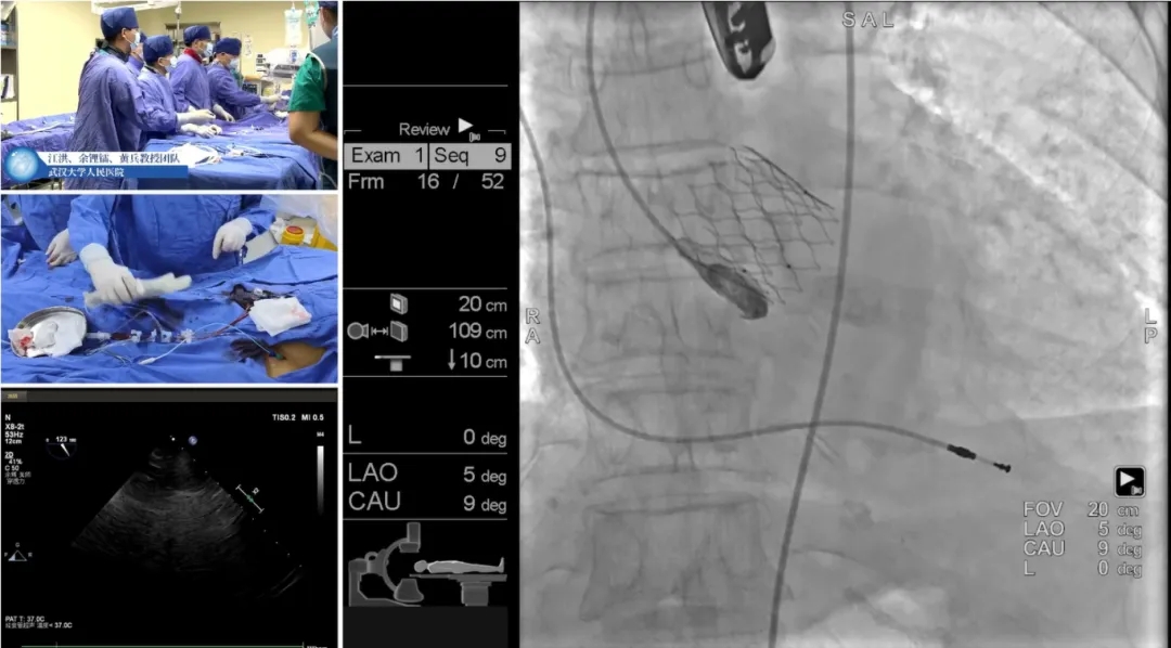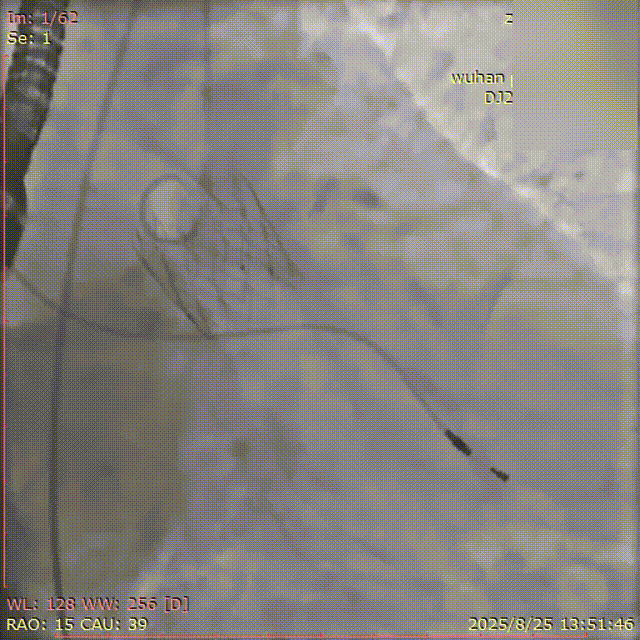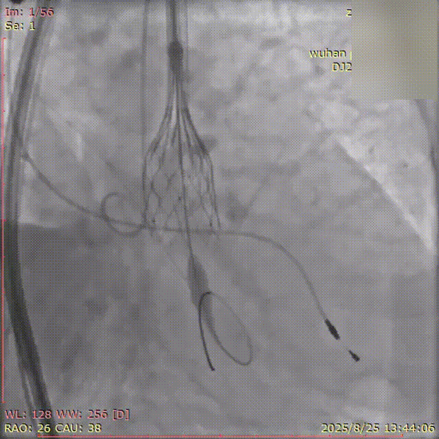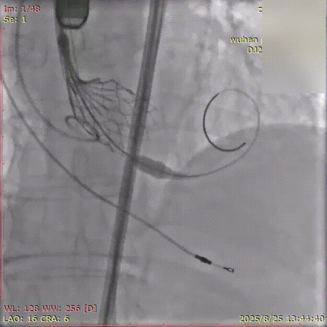 手术操作:该患者流出道敞口型,流出道无锚定力,需充分利用瓣上空间参与锚定,瓣膜需0位附近释放,术中通过顶导丝等操作保证瓣膜同轴性,当瓣膜完全展开后,多角度评估其稳定性