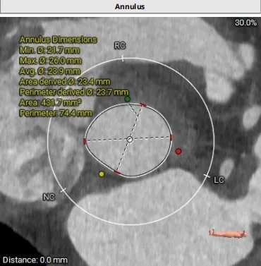 瓣膜型号:ScienCrown TAVTF27mm(oversize13.92%)