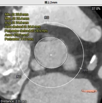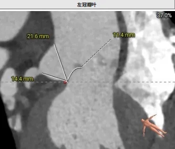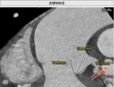 左冠切线位下立体评估左冠深浅左窦约瓣下3mm